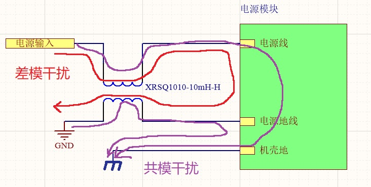 In the power supply design scheme, there are mainly two paths for external interference: common mode interference and differential mode interference. As shown in Figure 1, the interference between the power supply line and the power supply ground line at the power input port is differential mode interference. When external interference interferes with the circuit through this interference path, the application of SQ flexible flat cable common mode choke XRSQ1010-10mH-H can increase the input impedance during high-frequency interference, thus reducing the impact on the internal circuit.