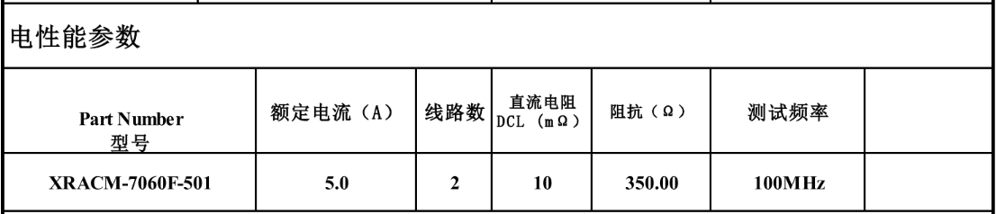 XRACM-7060F-501 has a DC resistance (DCR) as low as 10mΩ and an impedance as high as 350Ω (at the frequency of 100MHz), which means that it can effectively suppress high-frequency electromagnetic interference (EMI), thus ensuring the signal integrity and overall performance of the system.