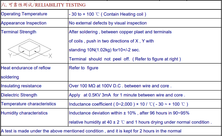 The temperature and humidity characteristics also meet the standards. After 96 hours of 90-95% relative humidity, 40 2℃ and 1 hour of normal drying, the inductance deviation can be controlled within 10%, which ensures the stability of the products in different humidity environments.