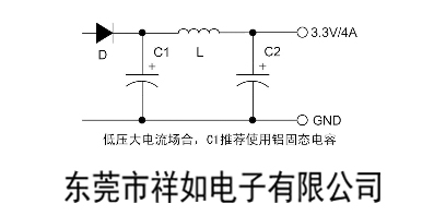 如:在低压大电流输出的应用场合,使用铝电解电容。铝固态电容具有极低的ESR和高纹波电流承受能力,非常适用于低电压大电流的整流滤波场合。